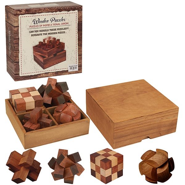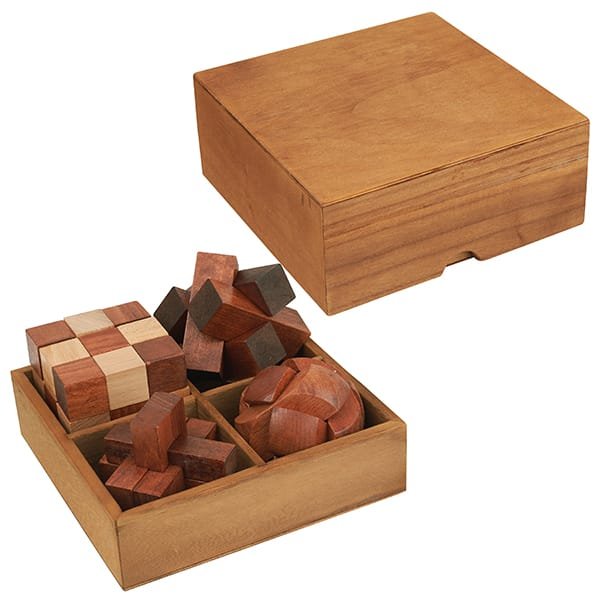 מארז מתנה מהודר ויוקרתי עם ארבעה משחקי חשיבה איכותיים.