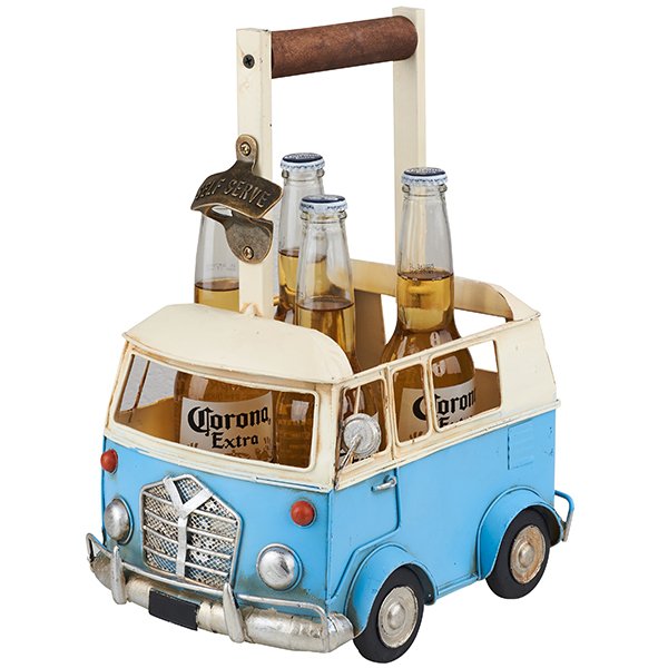 מנשא עץ ארבעה בקבוקי בירה עם פותחן