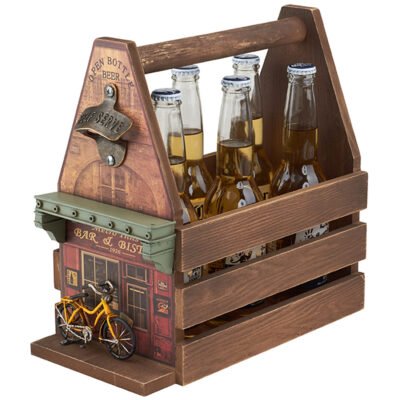 מנשא עץ לשישה בקבוקי בירה חזית בר + אופניים + פותחן