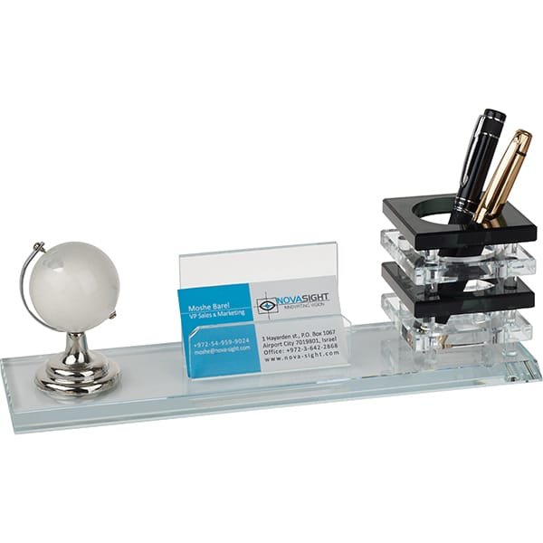 מעמד קריסטל גלובוס עם כוס לעטים ומעמד לכרטיסי ביקור