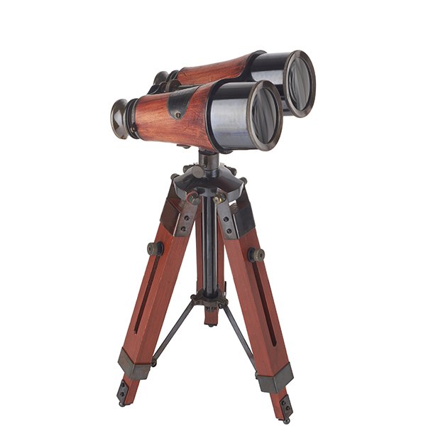 משקפת עץ ונחושת כפולה על חצובת טריפוד עץ