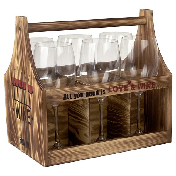 סט יין יוקרתי 6 כוסות קריסטל במארז מתנה מהודר מעץ