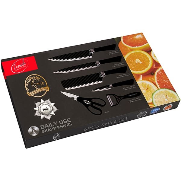 סט שף למטבח 6 חלקים COMIDA יוקרתי – כולל 4 סכינים מקצועיים, מספריים ומקלפן, דגם 5094