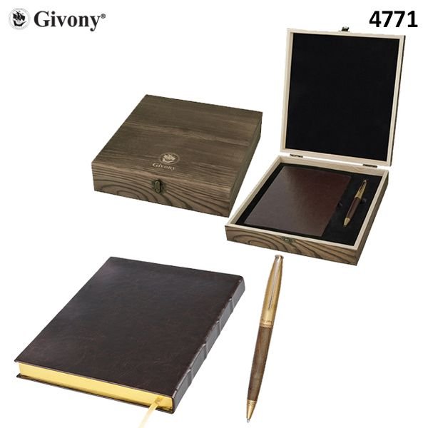 ערכת מתנה מהודרת מבית גבעוני – עט X-PEN ומחברת עסקים במארז עץ