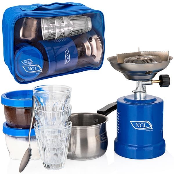 הערכת כוללת כירת בישול, 2 קופסאות לתה וקפה, כפית מתכת, פינג'אן נירוסטה, ו-3 כוסות זכוכית עם שרוול אחסון. כל מה שצריך כדי להכין קפה באופן מקצועי ונוח, תוך שמירה על איכות גבוהה וסטנדרטים. הערכה מושלמת לפיקניק, טיולים או שימוש יומיומי.
