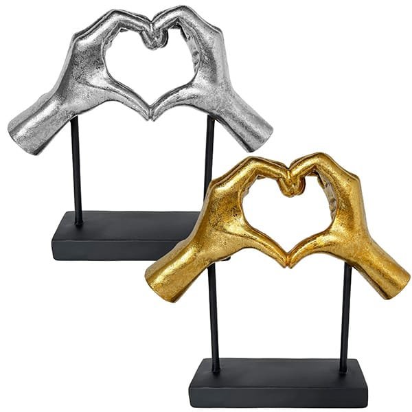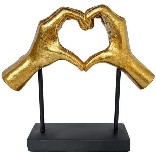 פסל אומנותי מוזהב "ידי הלב" בסיס שחור
