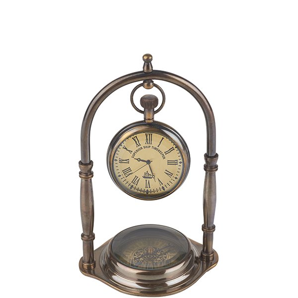 שעון כיס מתכת תלוי על מעמד נחושת עם מצפן